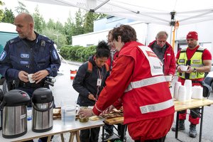 Henkisen huollon lisäksi myös vatsa tarvitsee täytettä. Tässä tapahtumassa ei evakuoitujen sen paremmin kuin muidenkaan harjoitukseen osallistuneiden tarvinnut kulkea kurnivin vatsoin.