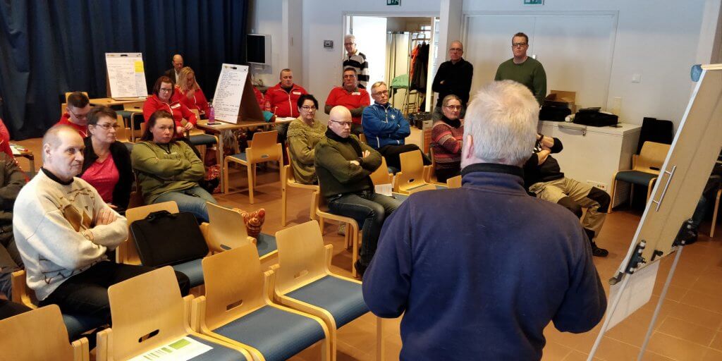Valmiusavausviikonloppu jatkui sunnuntaina kahdessa kehitystyöpajassa, joissa käsiteltiin koulutusuudistukseen liittyvää hälytysryhmien minimivaatimuksia sekä järjestöjen välistä valmiusyhteistyötä. Melinda Palomaa, keskustoimiston valmiuden yksiköstä avasi hälytysryhmien minimivaatimusten päivitykseen liittyvää laajaa ongelmakenttää, jota purettiin edelleen pienryhmissä ja koottiin yhteenvedoiksi keskustoimiston jatkotyöstöä varten. Toinen työpaja keskittyi järjestöpäällikkö Jooel Niittysen alustuksen jälkeen kyläturvallisuuskouluttaja Aana Vainion johdolla turvallisuustoimijoiden yhteistyön rakentumiseen muutamien käytännön esimerkkien ympärillä.