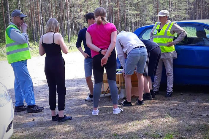 Alajärveläiset innokkaat vapepalaiset Aana Vainio ja Lahja Halla-aho olivat mukana rippileirin järjestelyissä ja pitivät siellä rastia, jossa tutustuttiin yleisesti vapaaehtoisen pelastuspalvelun toimintaan ja tehtiin pieni etsintäharjoitus. Jokainen ryhmä kirjautui tehtävälle, lähti etsimään merkkejä ”kadonneesta” lyhyen pikakoulutuksen jälkeen. Mahdolliset löydöt merkattiin maastossa kartalle, joka tuotiin ”johtopaikalle” ja nuoret kertoivat mitä löysivät. Lopuksi vielä annettiin aikaa kysymyksille, joita tulikin mukavasti. Ja sitten tietysti vielä kirjauduttiin pois tehtävältä ennen siirtymistä seuraavalle rastille.