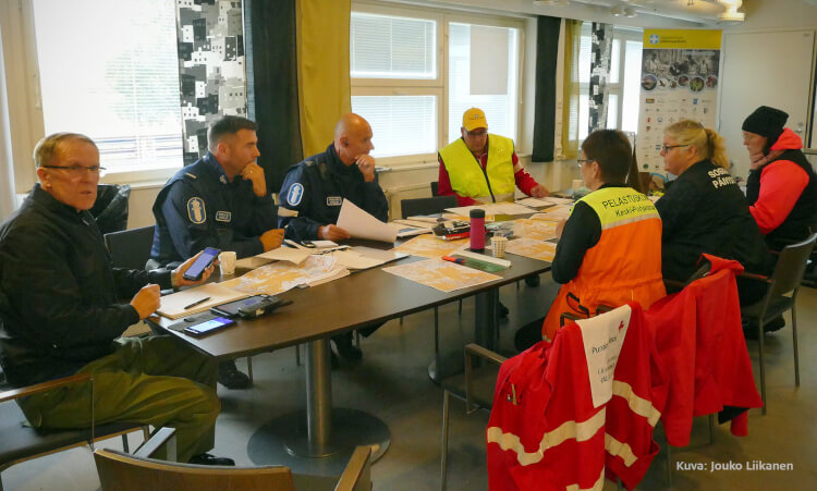 Johtohuoneesta löytyi poliisin tilanne- ja Vapepa-johdon lisäksi paljon muitakin toimijoita, ja tällä kertaa mukana harjoituksessa oli mukana myös sosiaali- ja kriisipäivystyskeskuksen johtohenkilö, jonka tehtäväksi harjoituksessa tuli järjestää muun muassa henkistä tukea onnettomuudessa menehtyneiden omaisille.