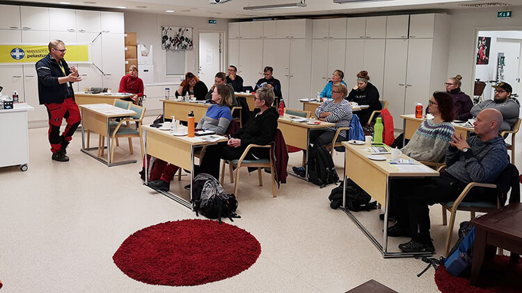 Seinäjoen kurssi kokoontui SPR:n tiloissa. Vas. kouluttaja Tero Mustonen.