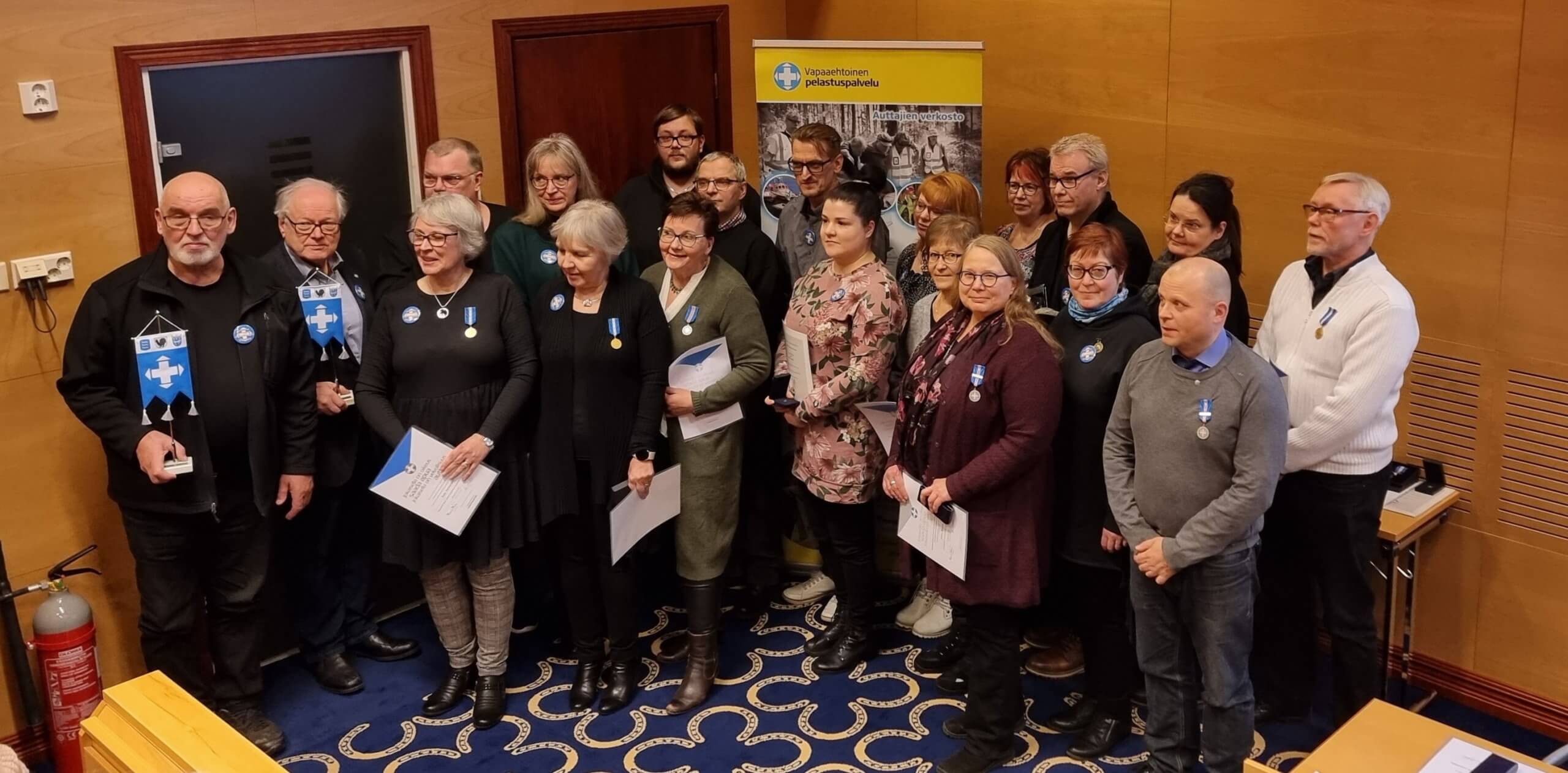 Vapaaehtoisen pelastuspalvelun huomionosoitukset Keski-Suomen maakuntatoimikunnan alueella jaettu seuraavasti: Vapepan pronssinen ansiomitali Kirsi Vilppula, Jyväskylä (ei kuvassa) Vapepan hopeinen ansiomitali Kirsti Laukkanen, Jyväskylä (eturivi, neljäs oikealta) Vapepan erikoisluokan hopeinen ansiomitali Juha Vimpari, Jyväskylä (eturivi, ensimmäinen oikealta) Vapepan kultainen ansiomitali Juha Levijoki, Keuruu (takarivi, ensimmäinen oikealta) Vapepan ansioristi Sirkku Laurila, Jyväskylä (takarivi,… Lue lisää