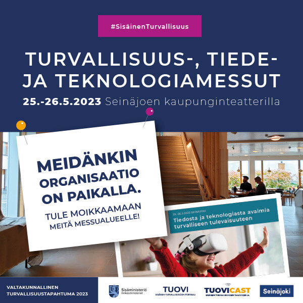 Vapepan esittelypiste on osana valtakunnallista turvallisuustapahtumaa 2023 Seinäjoella, muista ilmoittautua! Aika: 25.5.2023 – 26.5.2023 Paikka: Seinäjoen kaupungin teatteri, Alvar Aallon katu 12, 60100 Seinäjoki Lisätietoja: https://sisainenturvallisuus.fi/valtakunnallinen-turvallisuustapahtuma-2023-seinajoki tai sisainenturvallisuus.sm@govsec.fi Tutustu turvallisuustapahtuman ohjelmaan: https://sisainenturvallisuus.fi/turvallisuustapahtuma2023_ohjelma Ilmoittautuminen: https://link.webropol.com/s/turvallisuustapahtuma2023 Valtakunnallinen turvallisuustapahtuma on suurin vuosittainen sisäisen turvallisuuden toimijoiden verkostoitumistapahtuma. Seminaari on… Lue lisää